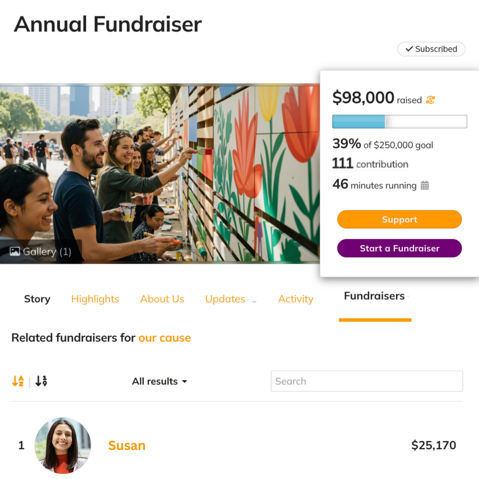 Turn your supporters into advocates. Our P2P tools allow your community to launch their own sub-campaigns, exponentially increasing your reach.